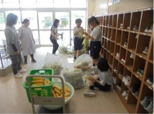 本日の給食でいただいた玉蜀黍の下処理を、はばたき学級の生徒が進めてくれました。1時間目の前半で100本の手際よく処理してくれました。さすがです。